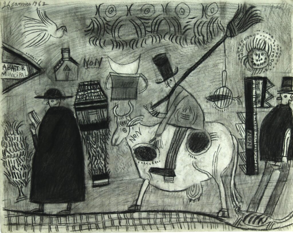 Dessins, peintures, sculptures : sous ses traits, les visages s’animent ; sous ses couleurs, les femmes et les hommes prennent vie ; sous ses doigts, tous se dressent et racontent ce Nord des années d’après guerre, entre joie des fêtes populaires et détresse des ouvriers dans leur vie quotidienne.